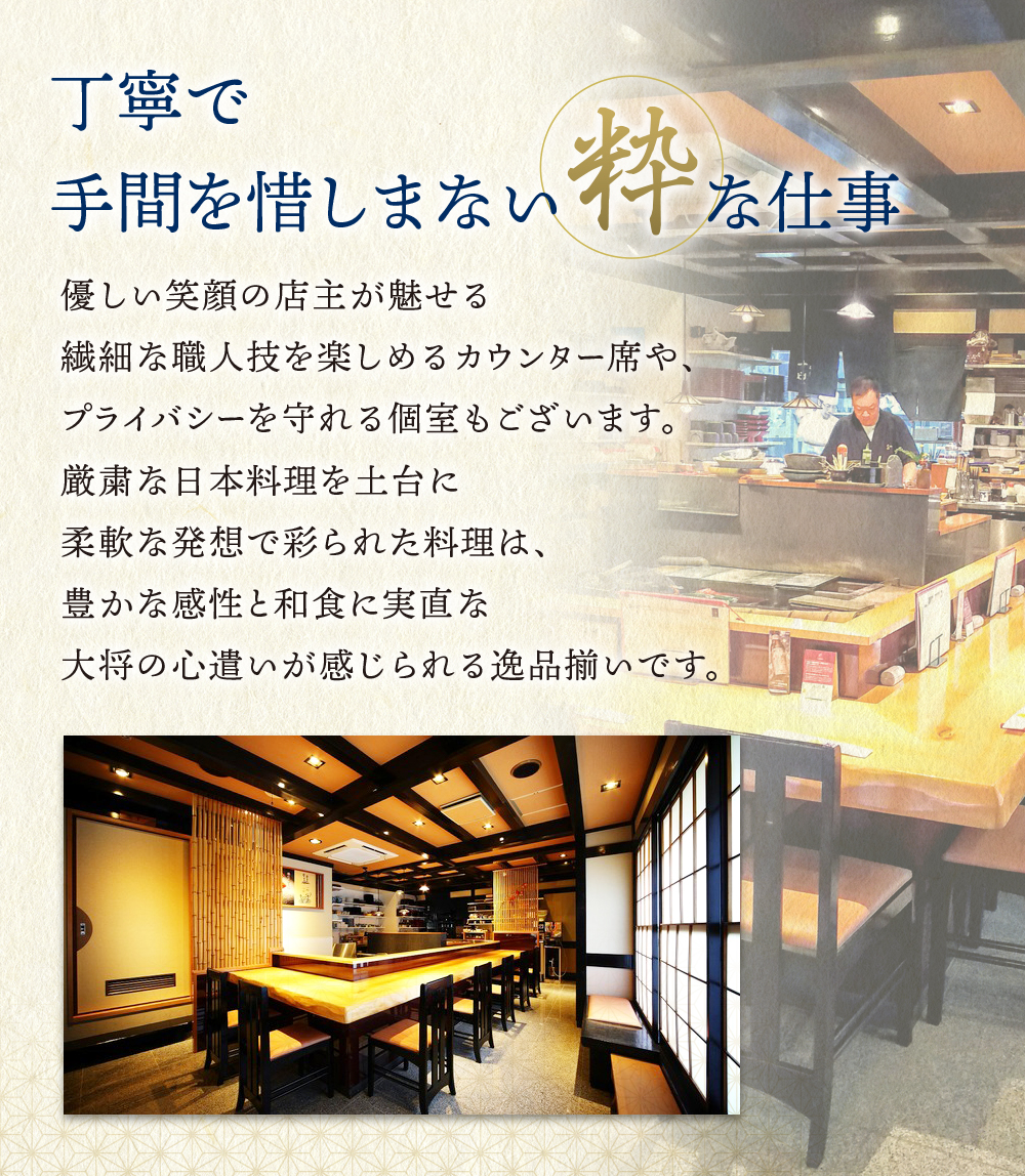 旬の新鮮素材にこだわった、季節の一皿をご提供。